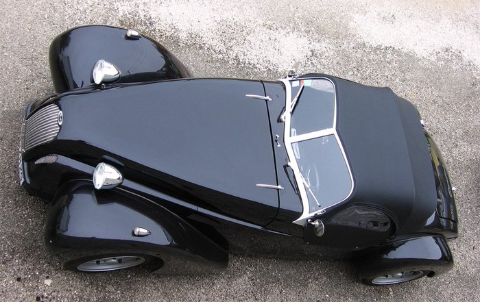 Le choix de la « Deuche » n’est pas anodin. Son châssis plateforme indépendant et sa mécanique accessible en font la donatrice idéale. Le concept consiste à retirer la carrosserie d’origine de la 2CV pour la remplacer par une nouvelle coque en fibre de verre, élégante et sportive, rappelant les roadsters britanniques des années 40 et 50. Le résultat est une voiture au look radicalement différent, mais conservant le cœur et l’âme de la 2CV.